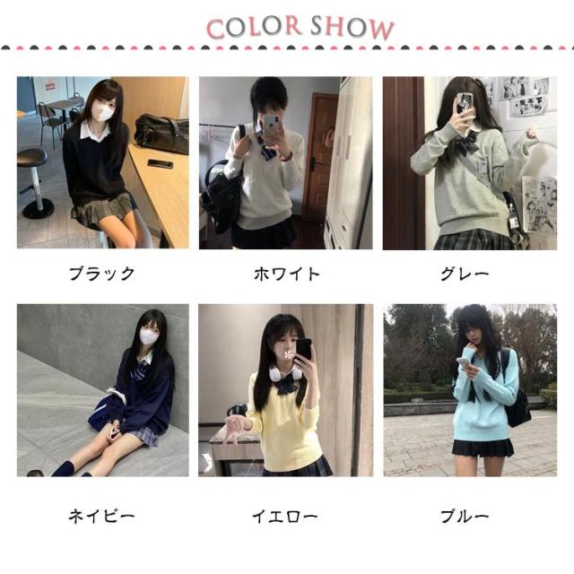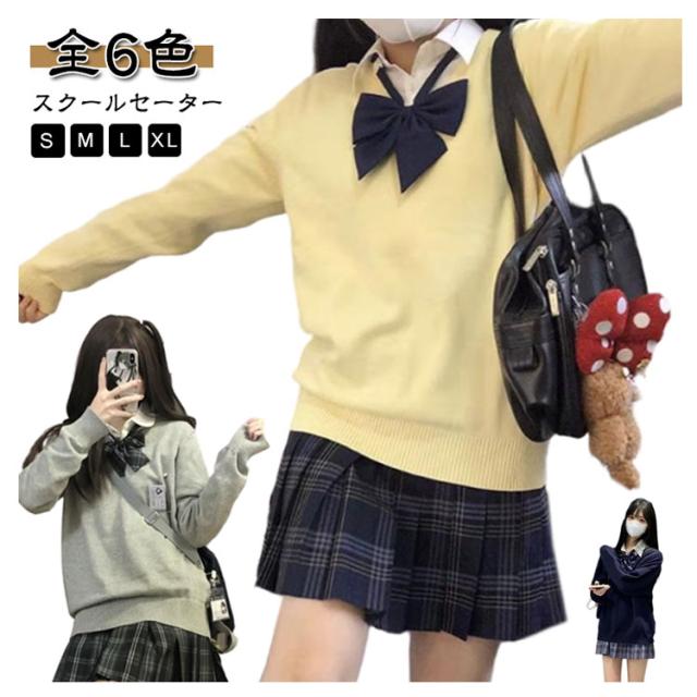 スクールセーター 長袖 女子 学校 高校生 中学生 制服 ニットセーター Vネック ニット 無地 スクール トップス 学生服 通学 春秋冬 セーター 大きいサイズ 可愛い 紺 グレー 黒 白 水色 ブラック ホワイト イエロー コスプレ シンプル レディース