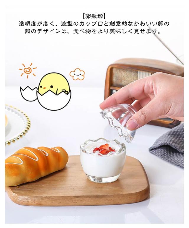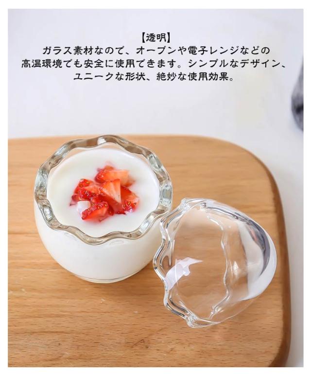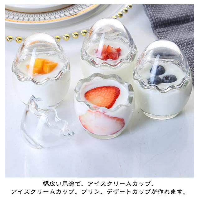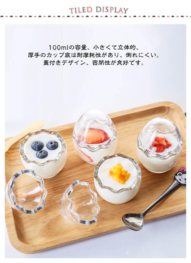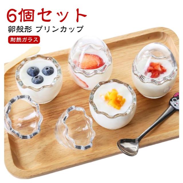【6個セット】プリンカップ 耐熱ガラス プリン容器 プリン型 蓋付き おしゃれ かわいい ミニ ヨーグルトカップ 卵殻型 デザートカップ カバー付き 透明 デザート お菓子 カップケーキホルダー 小物置き 結婚式 誕生日 パーティー好意