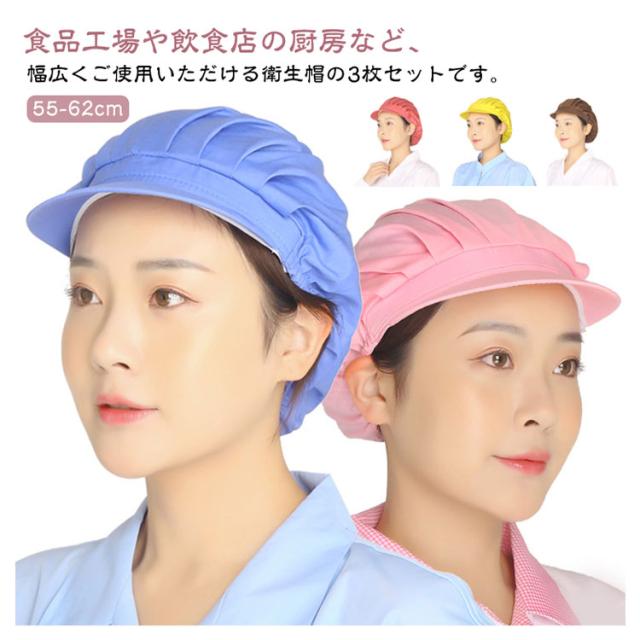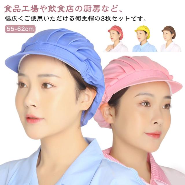 3個セット 衛生キャップ 帽子 洗濯可 髪落下防止 厨房 レストラン カフェ 工場 男女兼用 作業用 給食 飲食店備品 備品 通気性 給食帽子 衛生帽子 衛生帽 カフェキャップ レストランキャップ 後ろゴム仕様 ロングヘア ショートヘア 55-62cm