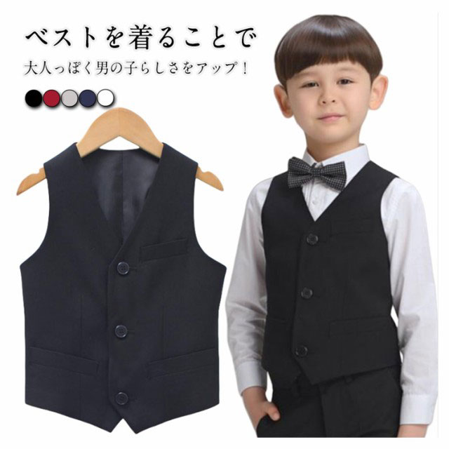 キッズベスト フォーマルベスト 子供服 男の子 ベスト 紳士服 無地 ジャケット ノースリーブ ベスト単品 スーツ用ベスト キッズ ジュニア 発表会 演奏会 ピアノ発表会 入学式 卒業式