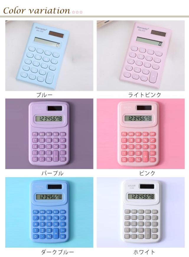 | 素敵なキャンディーカラー計算機 8桁、高精細大画面 ディスプレイは鮮明で、日常のコンピューティング機能のニーズを満たし、オフィスや学習に強力な助けとなります。 該当するシナリオ: オフィス、金融、レジ係 電卓本体はミニでコンパクトなので持ち運びが簡単です | |