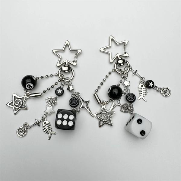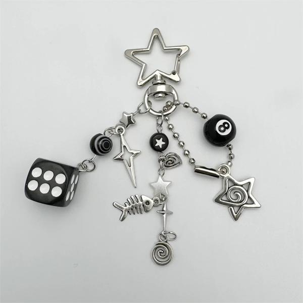 パンクキーホルダー,8個の黒いサイコロ,渦巻き,愛,十字架,魚の骨のペンダント,五芒星のバックル,キーホルダーアクセサリー,カップルギフト