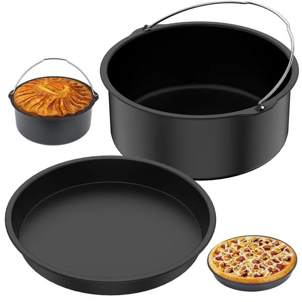 焦げ付き防止の丸いケーキ型,6/7/8インチ,ベーキングトレイ,ハンドル付きエアフライヤーバスケット,耐熱皿,ピザオーブン