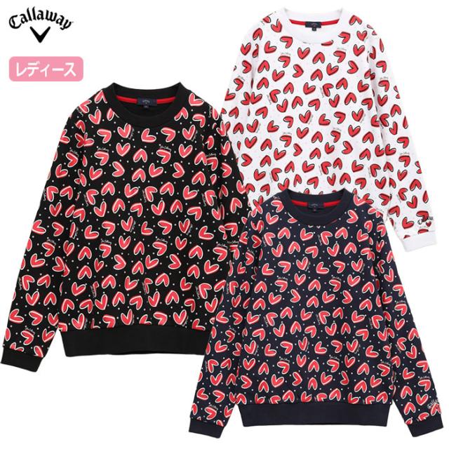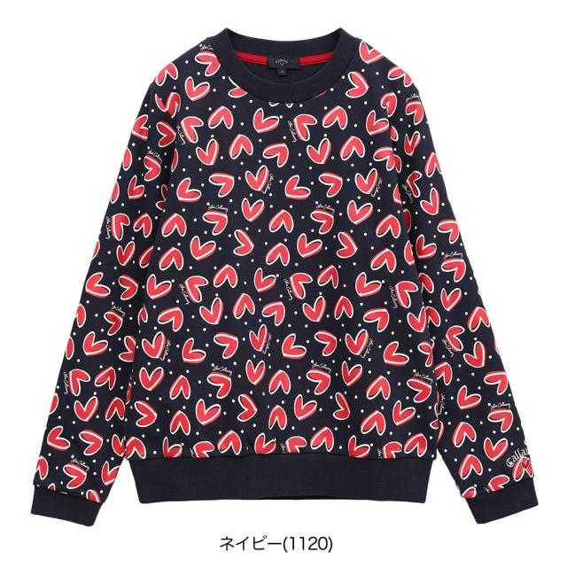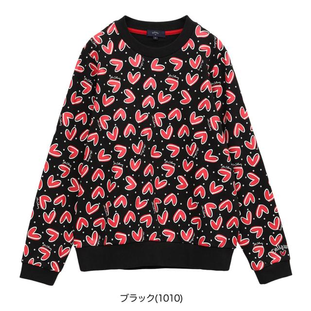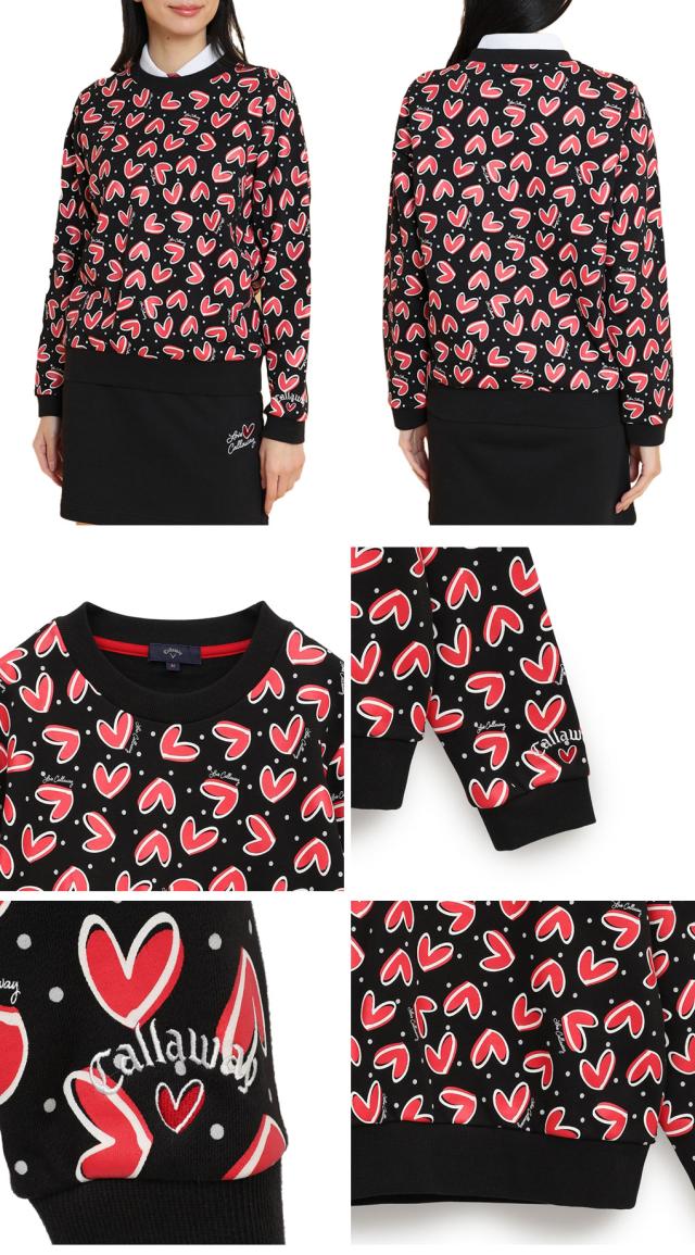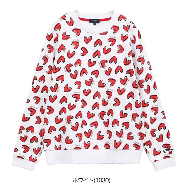 カジュアルな裏毛スウェット素材使用。LOVE Callaway ハートを総柄プリント。華やかな柄をいかし、ベーシックなクルーネックプルオーバーデザインに載せました。品番:C25117221