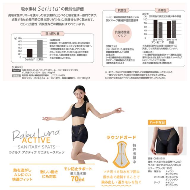 ・高機能素材:高機能不織布Serista?により、ニオイや菌を抑え、水分は瞬時に拡散、高機能な吸水素材。