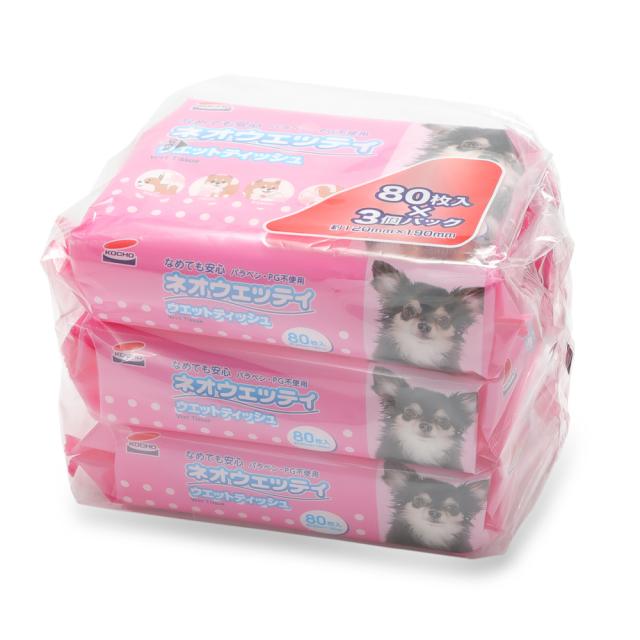 ネオウエッティ ウエットティッシュ 80枚×3P 日本製 [ウェッティ ケア商品 ノンアル 無香料 ペット商品 コーチョー]