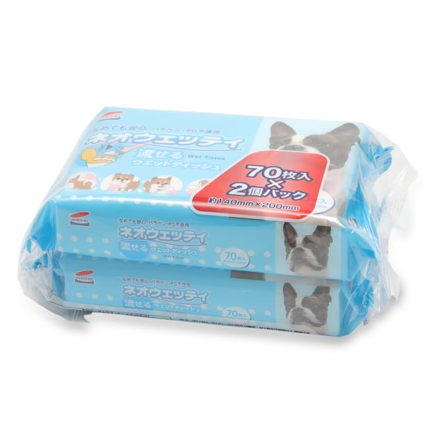 ネオウエッティ 流せるウエットティッシュ 70枚×2P 日本製 [ウェッティ ケア商品 ノンアル 無香料 ペット商品 コーチョー]