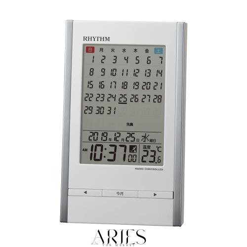 リズム(RHYTHM) 置き時計 目覚まし時計 電波時計 カレンダー 温度計 アラーム 白 15x9.1x5cm 8RZ210SR03