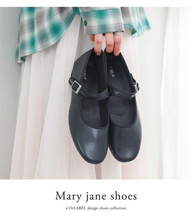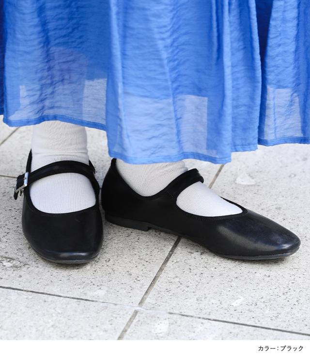『メリージェーン』【メール便不可】【30】[パンプス レディース シューズ くつ 靴 メリージェーン パイピング ストラップ 安定感 フラットシューズ ぺたんこ シボ感 オシャレウォーカー]
