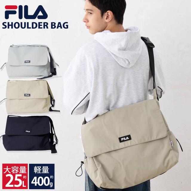 FILA フィラ ショルダーバッグ メンズ レディース 軽量 大容量 25L 通学 通勤 旅行 フラップバッグ メッセンジャーバッグ 筆記体ロゴ 刺繍 ナイロン ブランド 肩掛け おしゃれ スポーツ カジュアル 男女兼用 ユニセックス 黒 プレゼント 2025 outfit