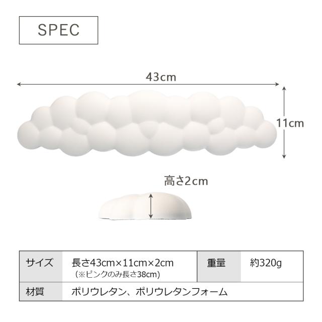 アームレスト リストレスト 雲 手首 腕 クッション 43cm デスクワーク PC パソコン 作業 おしゃれ かわいい ファンシー 雲形 雲型 オフィス デスク くも ハンドレスト 低反発 ホワイト 白