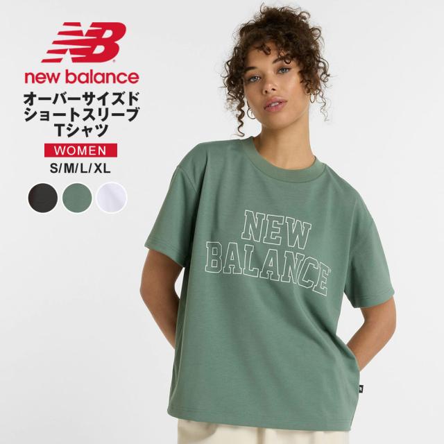 ニューバランス Tシャツ レディース 半袖 夏 綿 コットン スポーツ 部活着 普段着 トレーニング 速乾 吸水 シンプル オーバーサイズドショートスリーブTシャツ AWT51134 グリーン ブラック ホワイト 黒 白 New Balance