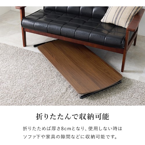 | 【商品紹介】 5段階に高さが変えられるリフティングテーブル。使用しないときは折りたたんで収納も可能です。 |