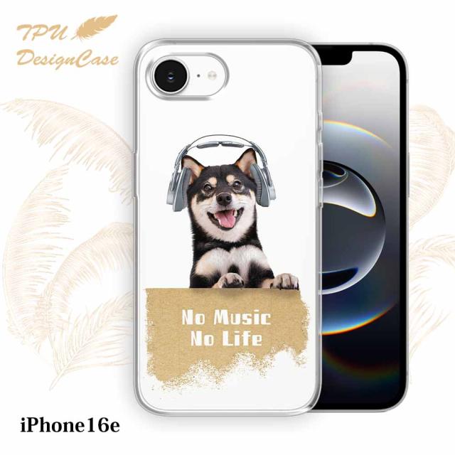 【14時までの注文で当日発送】 iPhone16e ソフトケース TPU クリアケース 透明 アイフォン16e ケース おしゃれ カラフル かわいい 犬 動物 黒柴だってNo Music No Life