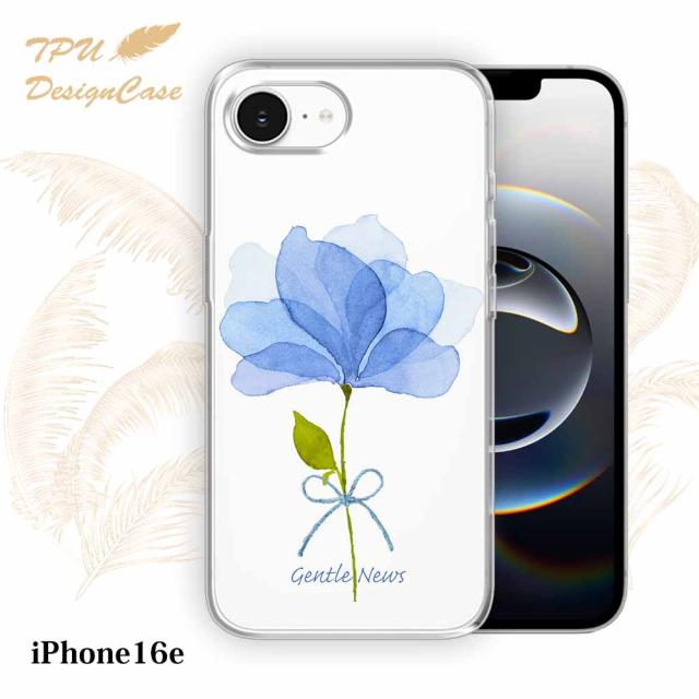【14時までの注文で当日発送】 iPhone16e ソフトケース TPU クリアケース 透明 アイフォン16e ケース おしゃれ カラフル かわいい 花 花柄 青い花 嬉しいニュース