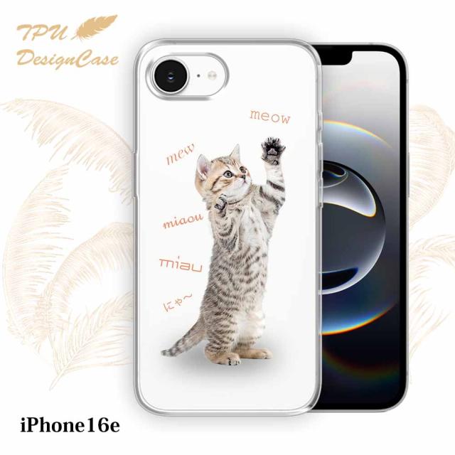 【14時までの注文で当日発送】 iPhone16e ソフトケース TPU クリアケース 透明 アイフォン16e ケース おしゃれ カラフル かわいい 猫 動物 猫の鳴き声