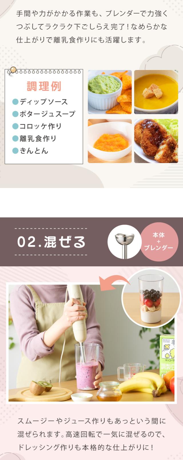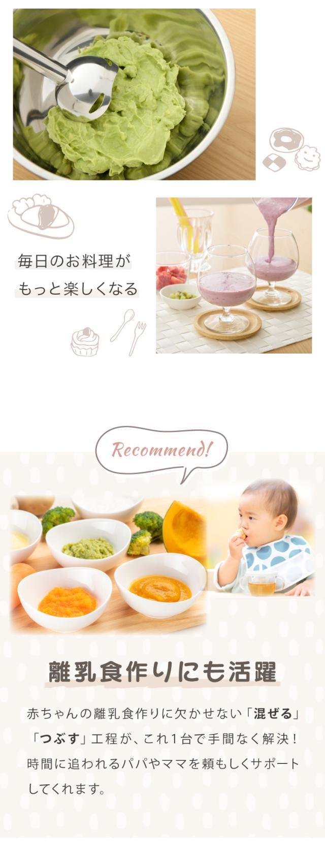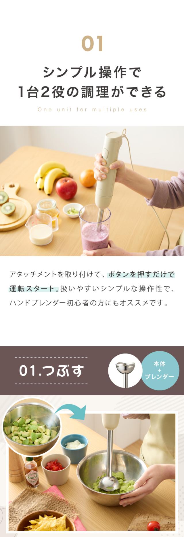 生クリーム、ホイップ、泡だて器、電動、フードプロセッサー、離乳食、調理器具、軽量、スリム、マルチスティック、ブレンダー、ジューサー、みじん切り器、つぶす、混ぜる、刻む、スピード調節可能、静音設計、多機能ミキサー