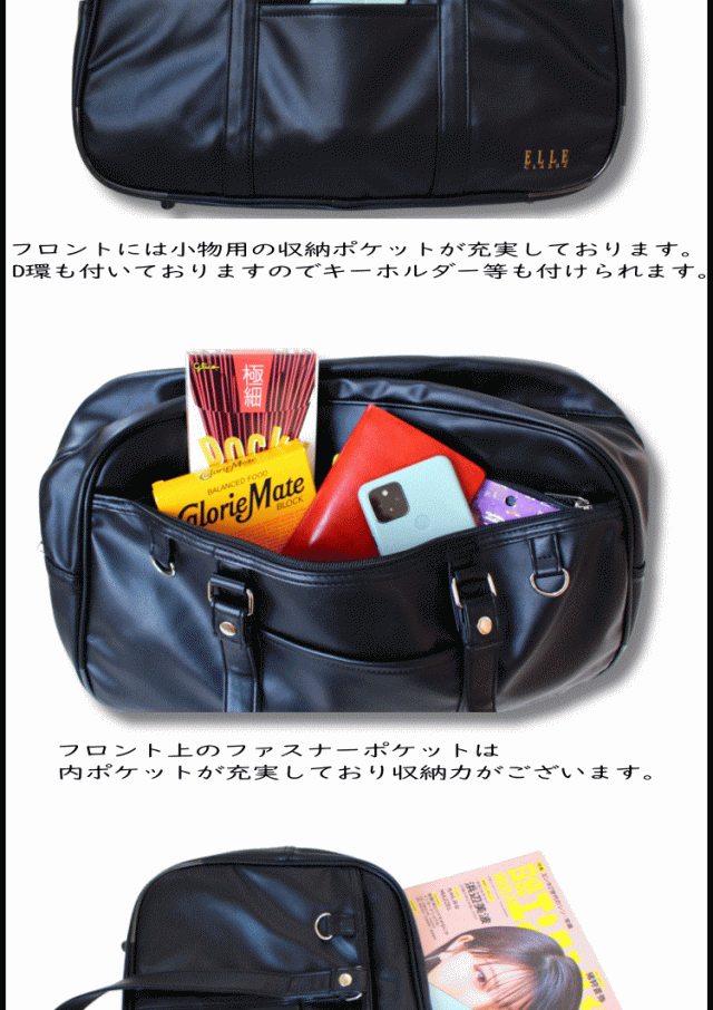 合皮 部活用バッグ メンズ レディース 男子高生 女子高生 男子中学生 女子中学生 高校生 中学生 フェイクレザー 合成皮革 学生鞄 A4サイズ B4サイズ 黒色 茶色 無地