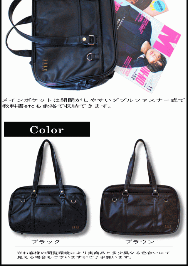 スクールバッグ ELLE エル 本革風 大きめサイズ 学生かばん 手提げ鞄 通学バッグ サブバッグ 軽量 ブラック色 ブラウン色 2ELAC6SB03