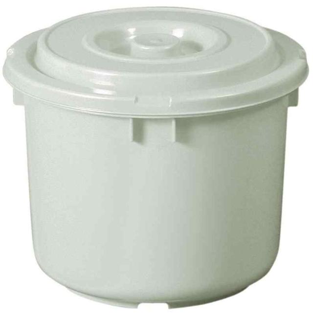 サイズ:直径30×高さ24cm、重量:650g、容量:10L、材質:本体=ポリエチレン、蓋=ポリプロピレン、付属品:専用押し蓋、生産国:日本