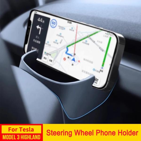 テスラモデル3ハイランド用ステアリングホイールフォンホルダー,中央コンソール用,小型収納ボックス,シリコンカーマウント,2024