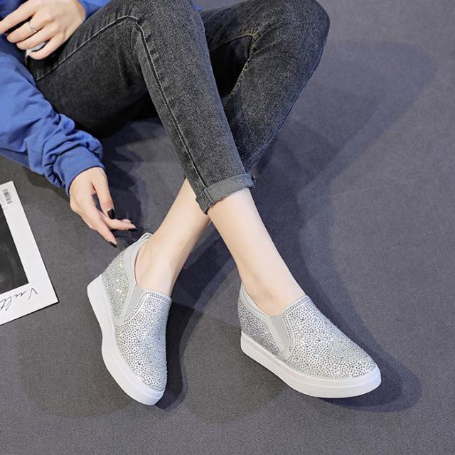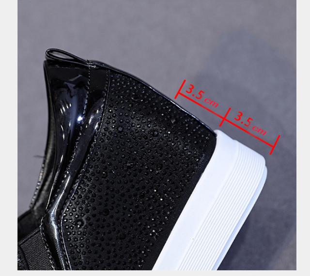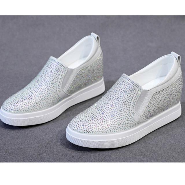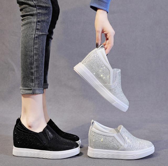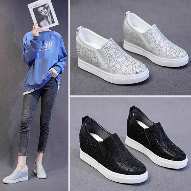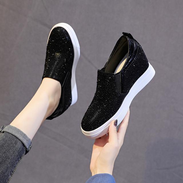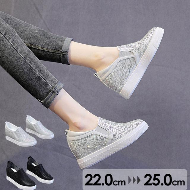 スニーカー インヒール キラキラ スリッポン ゴムソール PU 厚底 小さいサイズ 大きいサイズ ローカット ローファー レディース ブラック シルバー