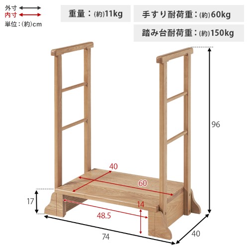 手すり付き玄関踏み台(両側手すり) ダークブラウン MFD-6908DBR (約)幅74×奥行40×高さ96×踏み台高17cm 【北海道・沖縄・離島 送料別】
