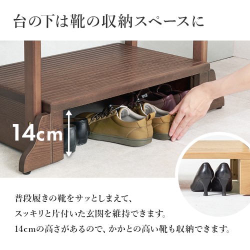 | 【商品紹介】 タモ材の木目が美しい、安心で便利な手すり付きの玄関踏み台。手すりを使って体を支えることでひざへの負担を減らし、段差の昇り降りが楽になります。 |