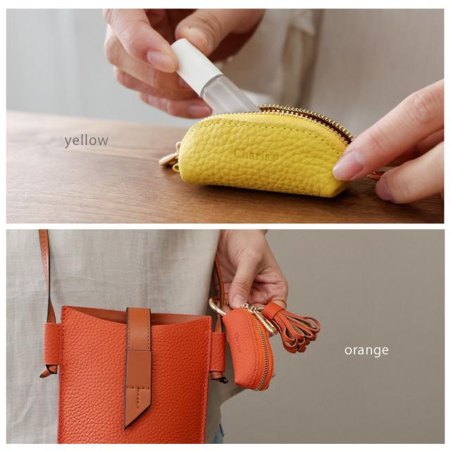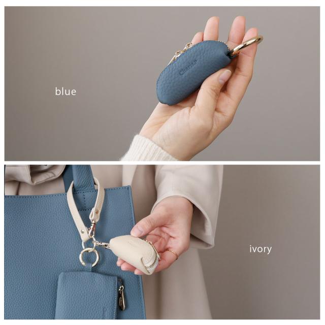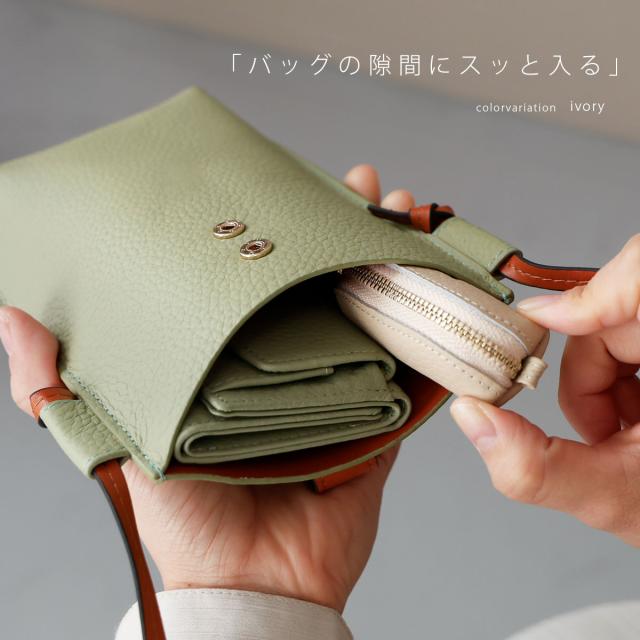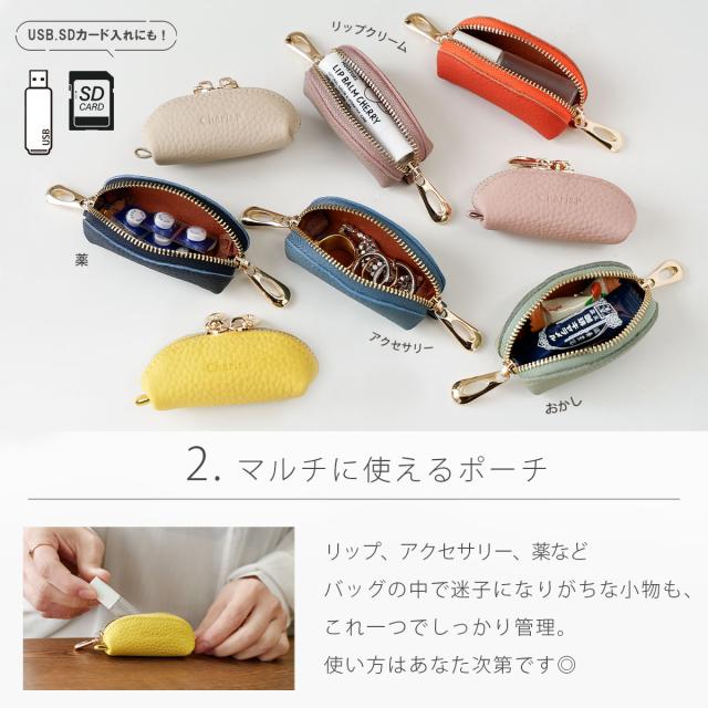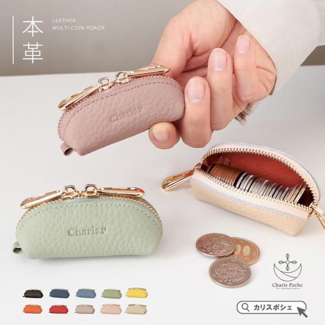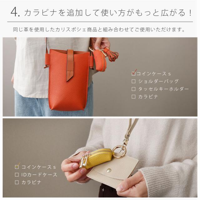 バッグに取り付けて収納をプラスする、Charis Poche人気のバッグシリーズと同じ革を使用したオリジナルの本革製マルチコインポーチ。