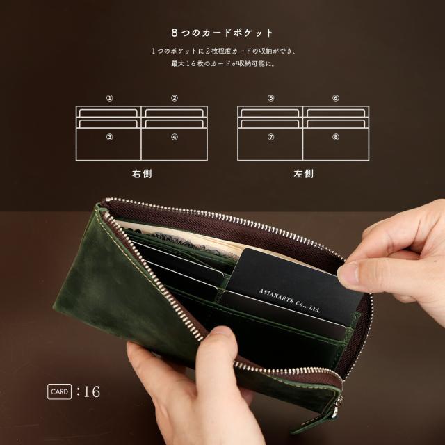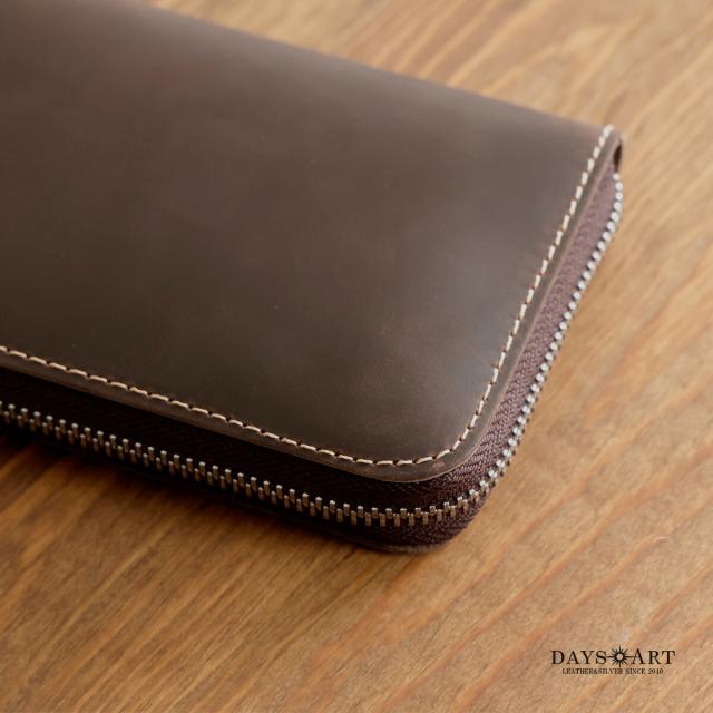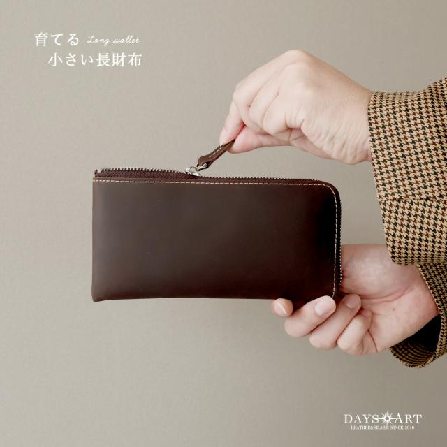 独特の風合いが魅力のオイルレザーを使用したL字ファスナーウォレット。一般的な長財布よりも小ぶりでコンパクトなデザインながら、L字ファスナーが大きく開き、中身が一目でわかる使いやすさが特長です。