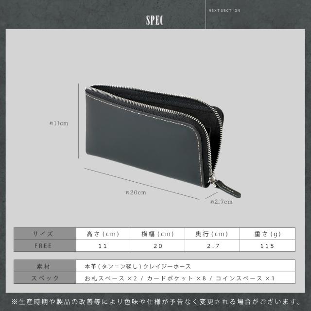 小さい長財布 L字ファスナー レザーウォレット メンズ 本革 クレイジーホースレザー アンティーク調