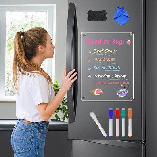 ??【四隅の磁石を取り付けた】これは四隅の磁石を取り付けた透明アクリル板です。プランニングボードは4枚の強磁石を採用し、平らな冷蔵庫や金属の表面に置くだけで、冷蔵庫や各種金属表面にしっかりと付着できます。ご注意:磁石は曲面、ステンレス、プラスチック、または特殊なコーティングが施された冷蔵庫のドアには適用されません。