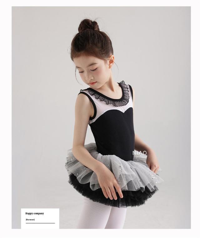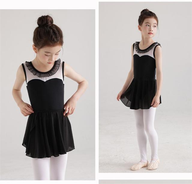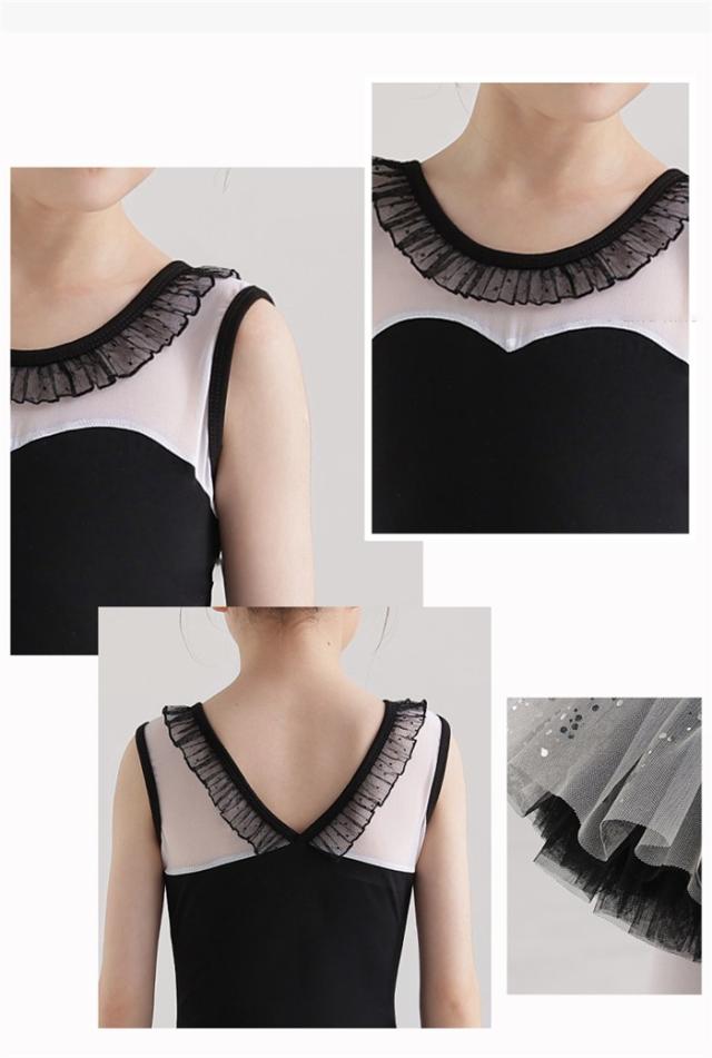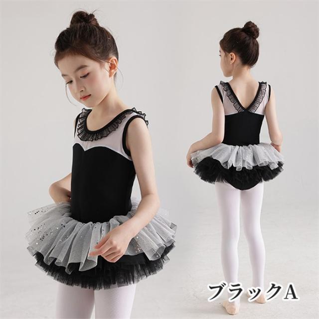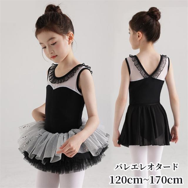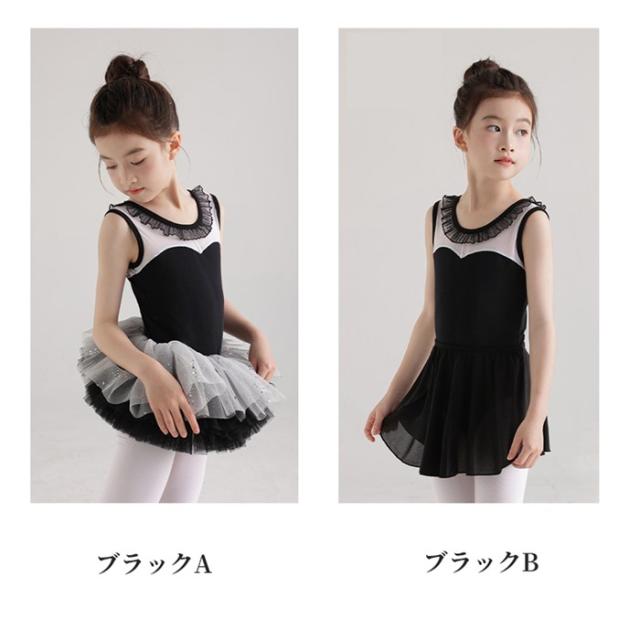 バレエ レオタード 子供 スカート付き バレエレオタード 黒 練習着 演出 ノースリーブ 体操 新体操 女の子 キッズ 子ども ジュニア 発表会 バレリーナ バレエ衣装 バレエダンス 可愛い 練習 レッスン ブラック