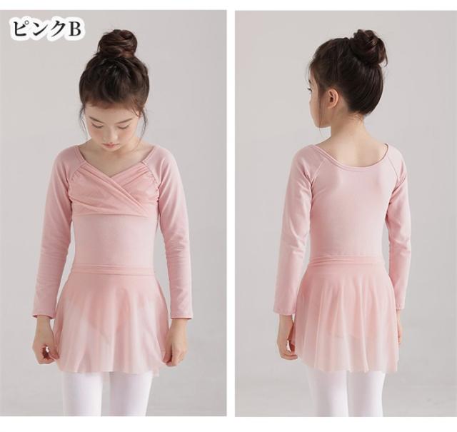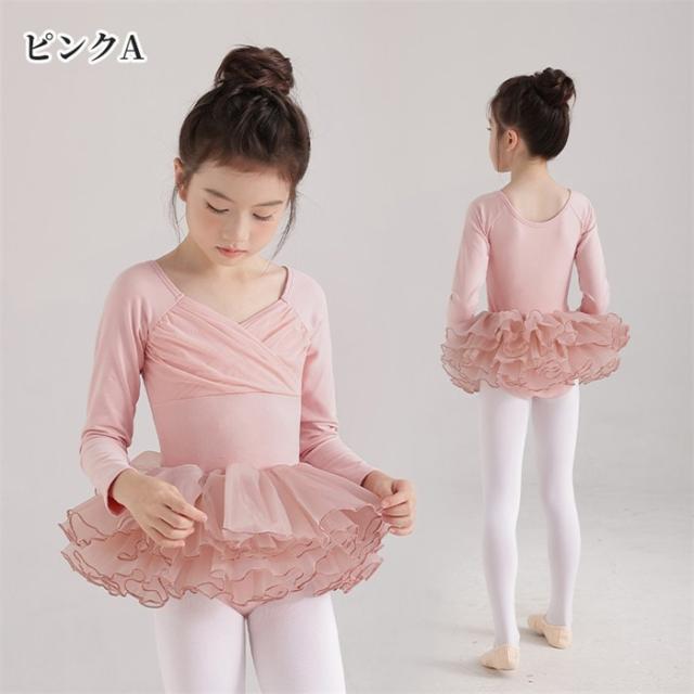 バレエ レオタード スカート付き バレエレオタード 女の子 長袖 子供 子供用 子供サイズ キッズ ジュニア ダンス 体操 バレエ用品 新体操 練習服 レッスン着 ステージ衣装 発表会 バレリーナ 可愛い 練習 レッスン ピンク パープル