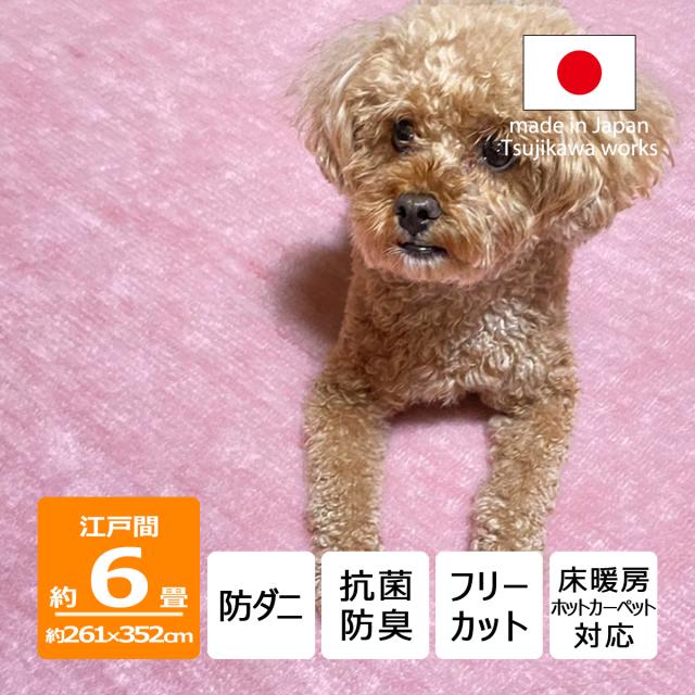 カーペット 六畳 6畳 防ダニ 犬 猫 ペット対応 パンジー ピンク ローズ 江戸間 6畳用 261×352cm ラグ 日本製 床暖対応 オールシーズン 絨毯 じゅうたん 抗菌防臭 女の子 フリーカット ハサミ 切れる 6帖 国産 辻川産業株式会社 Tsujikawa