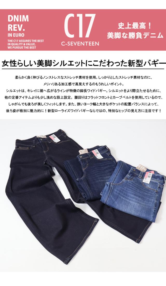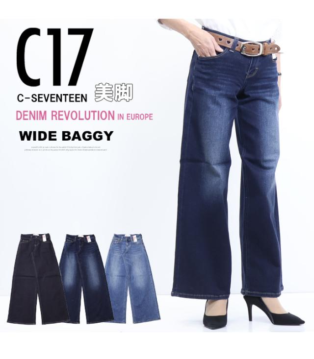 C17 C-SEVENTEEN CB245 ワイドバギー デニム ジーンズ ワイドパンツ ストレッチ シーセブンティーン レディース