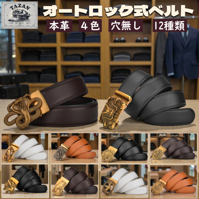 ベルト メンズ オートロックベルト 本革 オートロック式 自動ロックベルト 穴なしベルト 穴無しベルト 龍 ヴィンテージ おしゃれ かっこいい 高級 スポーツ 30代 40代