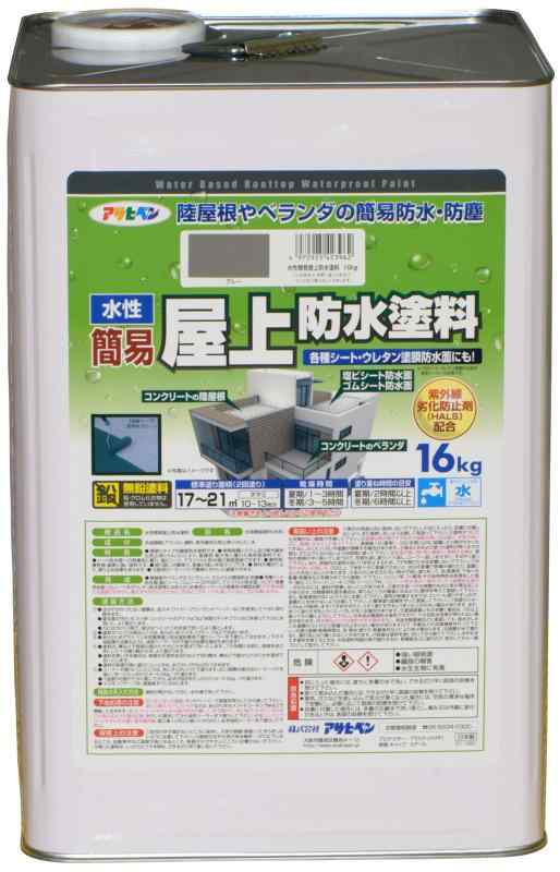 アサヒペン 塗料 ペンキ 水性簡易屋上防水塗料 16kg グレー 水性 防水塗料 滑り止め効果 耐候性 耐久性 紫外線劣化防止剤配合 酸性雨 酸性雪 塩害に強い 日本製