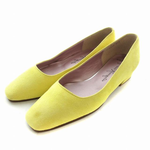 【中古】銀座かねまつ GINZA Kanematsu パンプス スエード スクエアトゥ ローヒール 21.5cm 黄 イエロー
