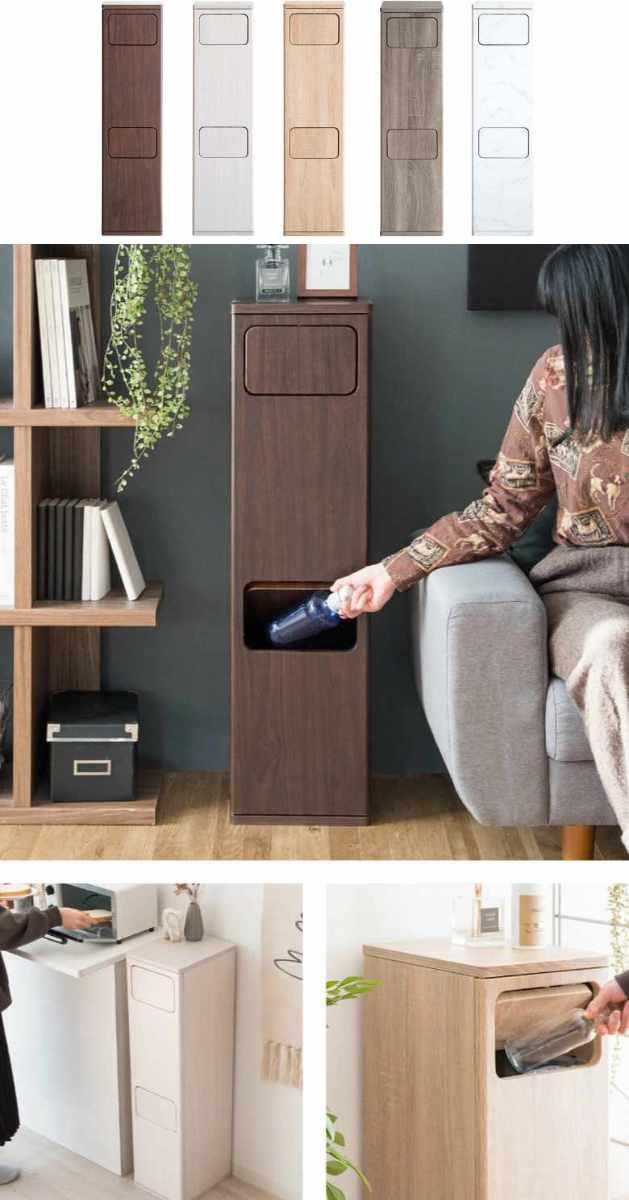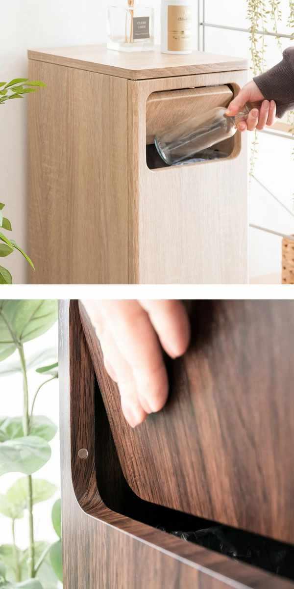 インテリアに溶け込む木目調の2分別プッシュ式ダストボックス