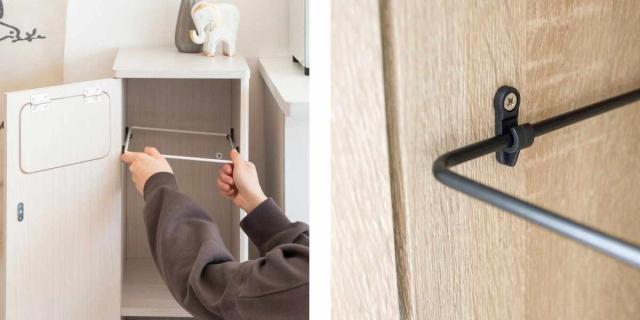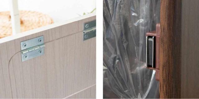 扉の開閉部分には強度の高いスチール製の蝶番を使用しており、開け閉めがスムーズです。また、前扉の開閉は開けやすくしっかり閉まるマグネット式で、袋の出し入れがラクラクです。
