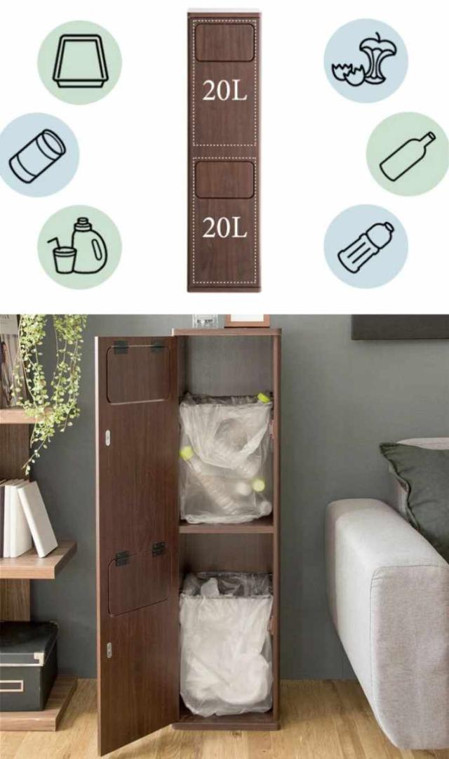 上下で別のゴミが捨てられる2分別仕様になっており、それぞれ容量は20Lサイズです。分別ゴミが出やすいキッチンはもちろん、リビングや寝室など様々な場所で、ゴミを分けながら捨てられます。後で分別する手間が省けて便利です。