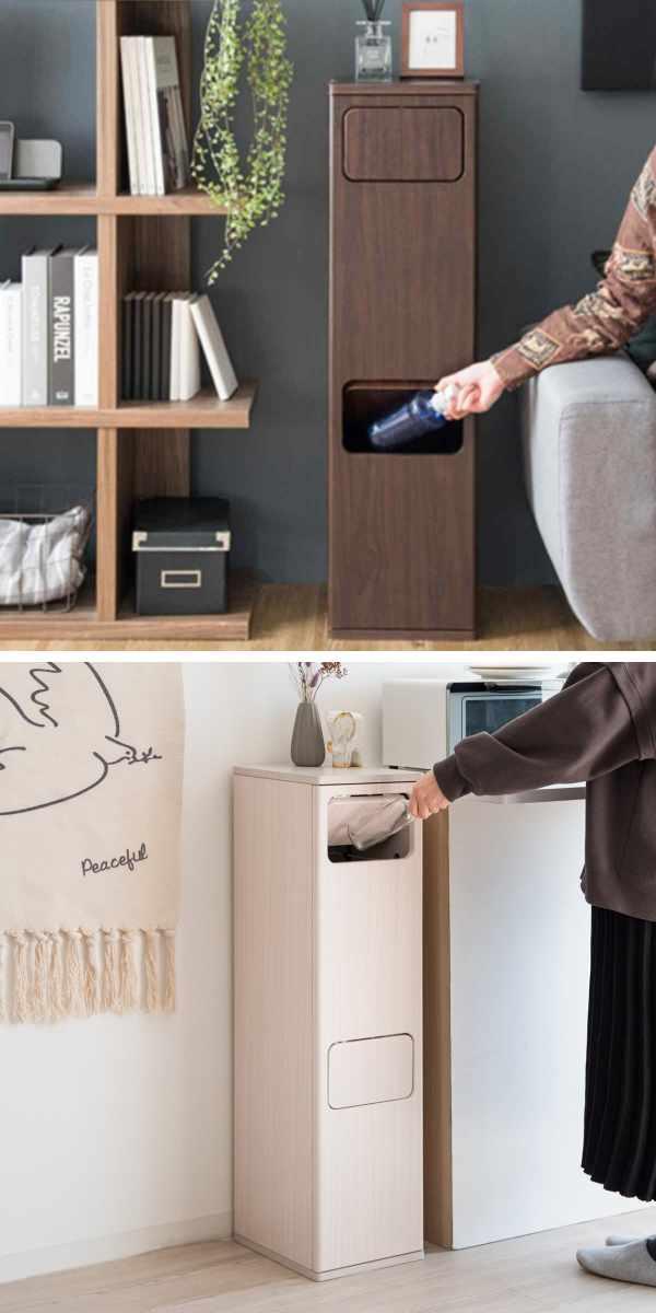 ゴミ箱に見えない、スタイリッシュなデザインのダストボックスです。幅25cmのスリム型なのでどこに置いても圧迫感を与えず、狭いキッチンや家具と家具の隙間でも設置が可能です。