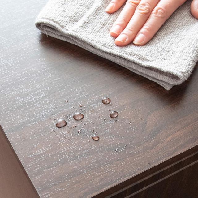 木板は塩化ビニル貼りのパーティクルボードで、撥水性・耐久性に優れています。水に濡れてもひと拭きでキレイになるので、キッチンに設置するのにもおススメです。