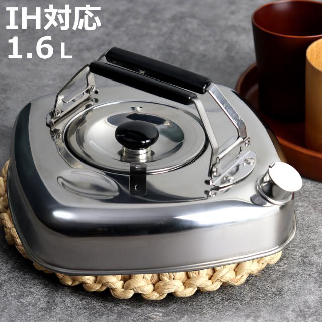 キューブケトル 1.6L 薄型 コンパクト ステンレス製 日本製 ( やかん IH対応 ガス火対応 薬缶 ケトル 四角 1.6リットル 角型 小さい 保存 冷蔵 ステンレスケトル 茶こし シンプル 麦茶 出汁 湯沸かし ヤカン おしゃれ アウトドア )