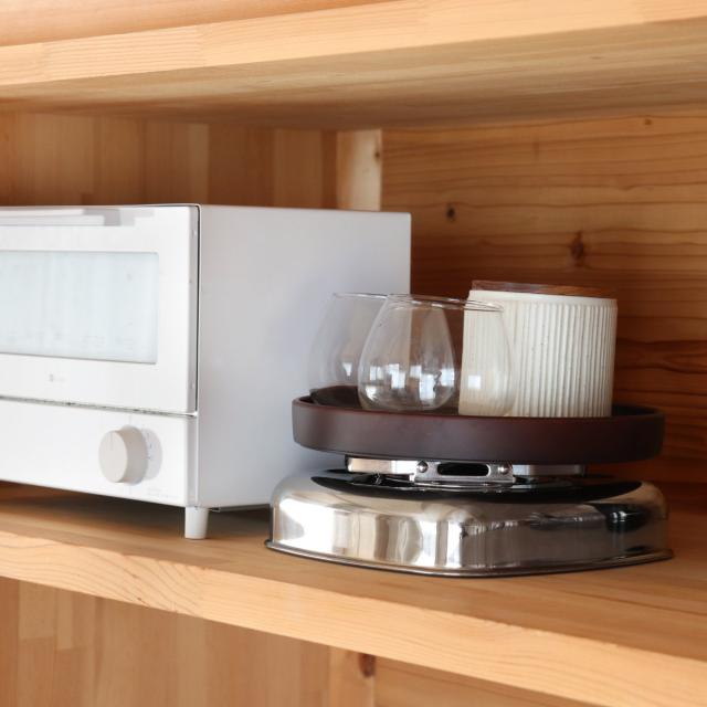 角型なので、棚や食器棚にも収納しやすいです。ケトルの上にも重ねることができるので、場所を取らずにすっきり収納できます。