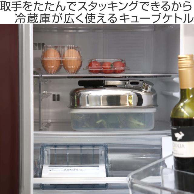 取っ手をたたむとスタッキングできる 薄型のキューブケトル