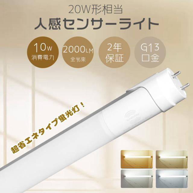 LED蛍光灯 20W形 人感センサー付き 直管 58CM LED蛍光灯 直管 58CM 蛍光灯 20形 直管 LED 直管LEDランプ 20形相当 直管型LED蛍光灯 センサーライト 室内 人感 消費電力10W 高輝度2000lm G13口金 直管蛍光灯器具 片側給電 580MM 20W型 20型 LED照明 廊下 玄関 階段 洗面所