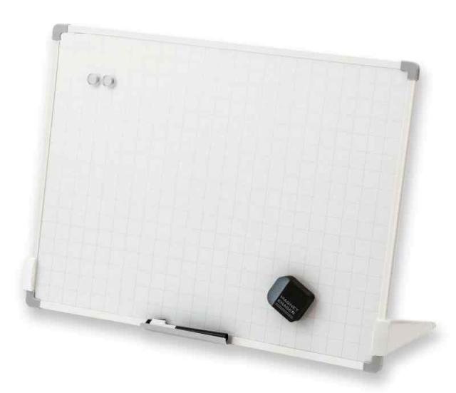 スタンドは取り外し可能、スライドさせて板面の角度を変えることもできます。また、スタンド先端には滑り止め用のゴムが付いています。●ボード面には25mmの方眼線が薄く入っているから、グラフやイラスト、文字などが書きやすく、写真や用紙を貼る時もまっすぐ貼ることができます。