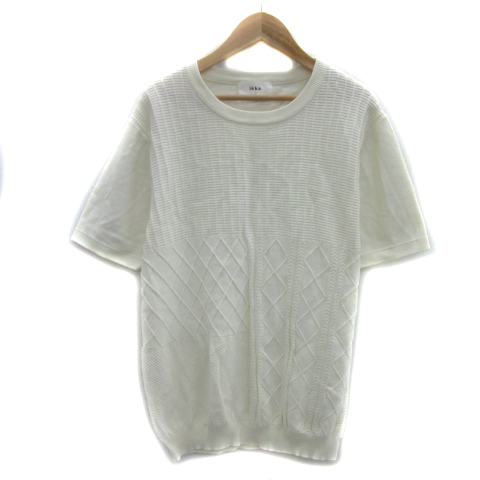 【中古】イッカ ikka ニット カットソー 半袖 ラウンドネック L 白 ホワイト /YS34 メンズ